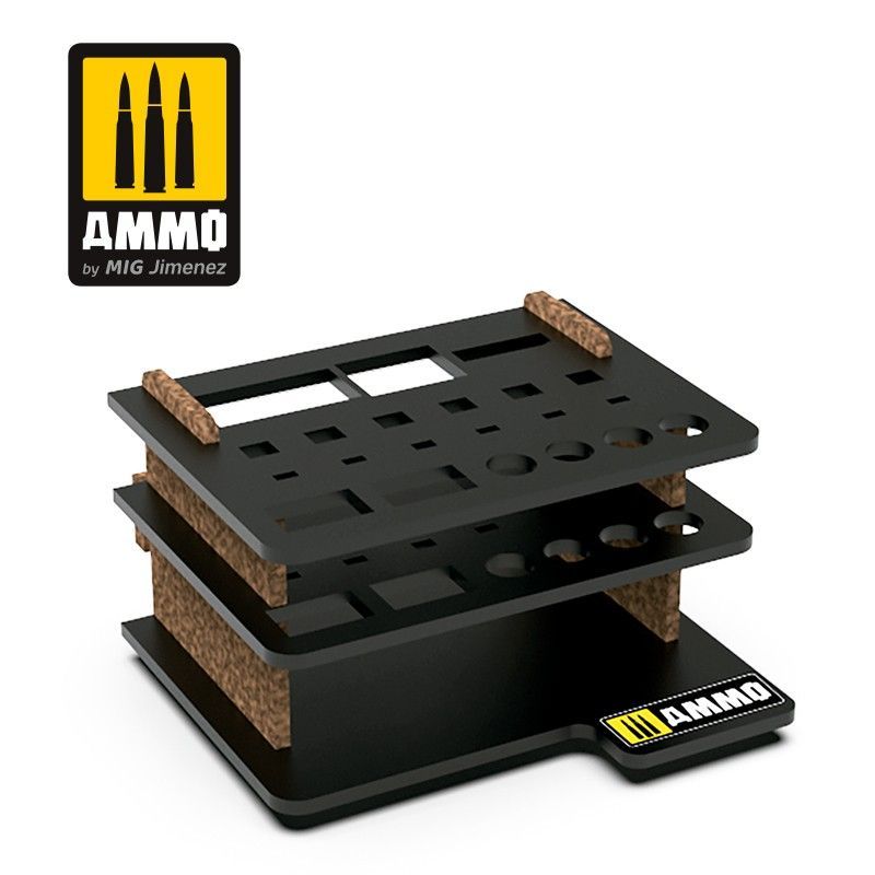One of the most recurrent problems in modelling studios is keeping the work table organised and clean. For a long time, the AMMO team has been thinking about how to solve this problem and we present what for us is the definitive solution. This modular system made of high-quality material is designed by and for modellers and has been put to the test by a host of professional scale modelers.