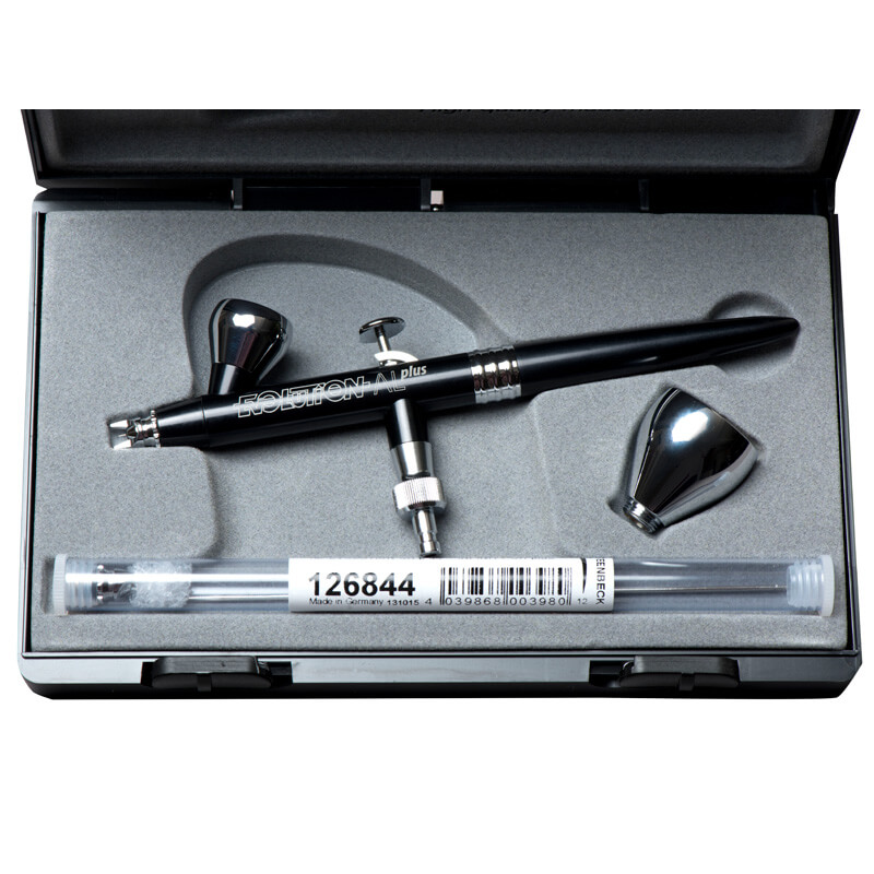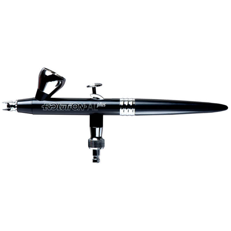 ALplus er udført i aluminium hvilket giver den en vægt på kun 56 gram eller ca. det halve af hvad en traditionel airbrush vejer. Flot design i matsort og Chrom.