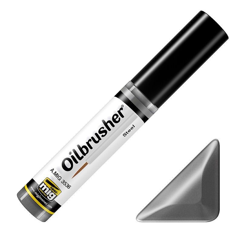 You can apply a perfect metal finish using the new Oilbrusher oil colors. Many parts of our models have a steel finish. Realism can be achieved easily with this reference, either using it directly, or applied over other metallic colors to alter the tone.