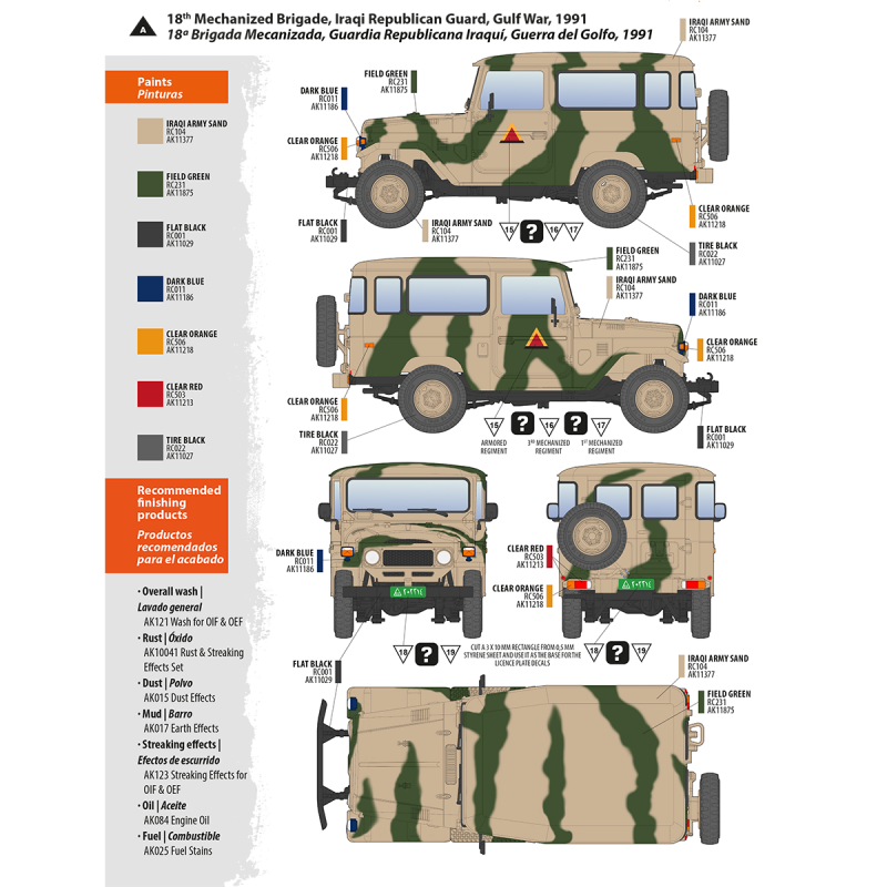 AK35001 is the HardTop version of the vehicle, probably one of the most popular variants in use. The top could be easily removed or refitted as conditions demanded, but it was a most useful asset under cold, rainy or dusty weather, both for military and civil users along the many decades of service of the vehicle. The modeler can make different changes in the kit and easy variations to match different configurations seen through the years in different conflicts or civil versions. Is perfect to build out of box or to update and adapt to our own version. This kit allows a multitude of possibilities.
